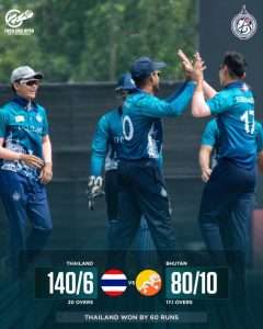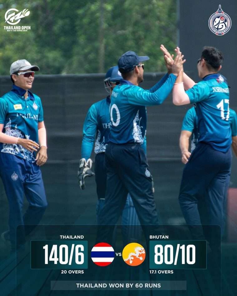 Thailand are hosting a four-team T20I men’s tournament at TCG in Bangkok and the hosts fought back brilliantly after losing their first match against Japan by beating Bhutan convincingly by 60 runs.
